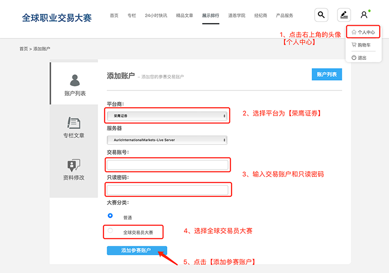 ),并选择“全球交易员”大赛.
